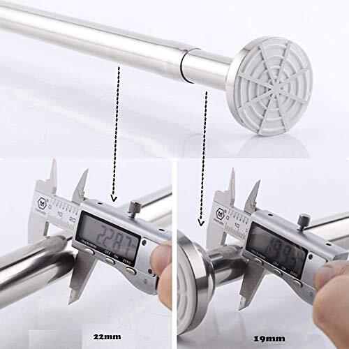 【便利さ・長さ調整可能】 私たちのつっぱり棒は高品質なステンレスを採用して作られております。直径:外パイプ22 mm、内パイプ19 mmです。そしてくぎ、ネジ、パンチなどのツールが必要がなくて、とても簡単にインストールすることができます。壁に穴がある心配もなく、壁に痕跡も残りません! 【抜群な耐荷重】 この強力な伸縮棒はとても強い耐荷重を備えております。(最大15kg)。重い洗濯物干しや厚地のカーテンがもちろん、たわむこともなく、ずれ落ちる心配もなく、台風にも耐えられます。しかも長時間に使用しても錆びなく、優れる耐用性もありますよ。 【省スペース】 私たちの突っ張り棒の長さは自由に調節可能で、いろんな場所でもうまく使うことができ、とても省スペースで、しかも使わない場合にも便利に取り外すことができます!どんな壁でも使用可能で、木製壁やタイルなどの様々な壁面に適用し、とても省スペースです! 【様々な場合に適用】 伸縮棒は様々な場所に適用します!例えば:室内クロゼットロッド、カーテンロッド、DIY棚、シャワーカーテンロッド、バスルーム衣類用ロッド、屋外物干し、布団干しなどいろいろな場合で大活躍します! 【品質保証】 ご購入日より一年間以内に何かご質問があれば、御遠慮なく、お問い合わせください。私たちは24時間以内に返信し解決いたします