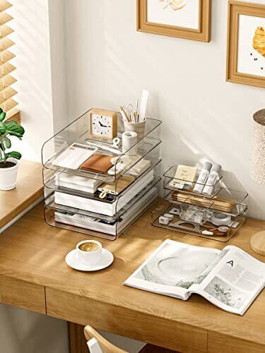 A4縦置き3段書類トレー、レターケース 、レタートレイ、ブックなど収納 (3段、クリア)