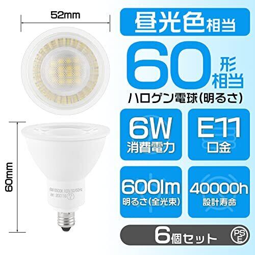 LED電球 E11 LEDスポットライト E11口金 昼光色 60W形相当 ハロゲン電球形 E11 6W 600lm 一般家庭照明 リビング オフィス キッチン照明 人気 6個セット