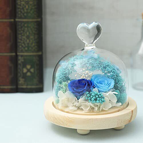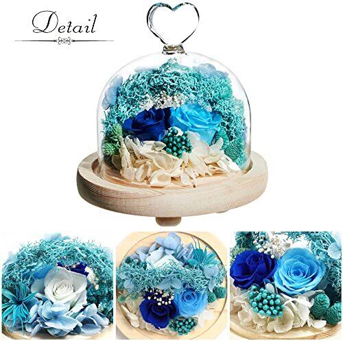 ティートサイト プリザーブドフラワー フラワー ギフト 花 プレゼント ガラス リース3輪 (1 バラ ブルー)