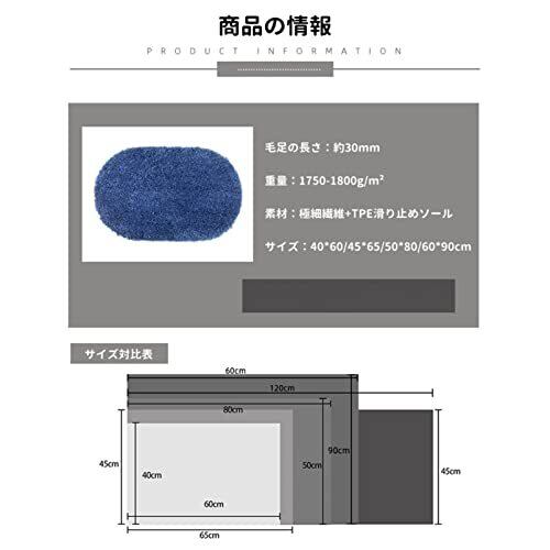 【素材】極細繊維+TPE滑り止めソール 【ふわふわ】バスマットは濃密なマイクロファイバー素材(超極細繊維)を採用し、抜群の通気性を持ち、細菌の増殖を抑制できます。毛足の長いふわふわ触りごこちが気持ちがいいです。 【滑り止め加工】裏面にはTPE素材のすべり止め加工がされて防水力、吸着力アップ。滑りがすくなってしまうトイレやキッチンなどの水回りでも安心してお使いいただけます。 【洗濯方法】手洗いでもいいが、洗濯機で丸洗い可能です。洗濯機での丸洗いはクリーニングネットをご使用ください。 【場所】バスマット、洗面所マット、玄関マット、足拭きマット、お風呂マット、ソファーマット、インテリアマット、カーペット、ラグマットなどの多目的に使用していただけます。