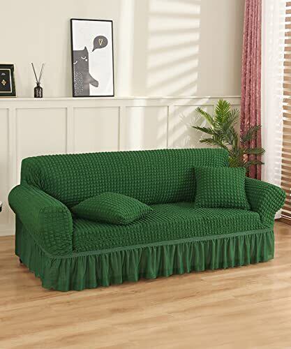 ソファーカバー 肘付き ストレッチ フリル ソファカバー 北欧 かけるだけ 伸縮性 フィットカバー 伸びる ストレッチ性 簡単取付 洗える 洗濯可【グリーン、3人掛け(190-230cm)】