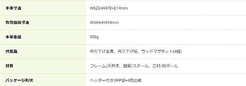 本体寸法:W620×H470×D14mm 有効盤面寸法:W584×H434mm 本体重量:950g 付属品:ウッドマグネット・ネジ・吊り下げ金具・吊り下げ紐
