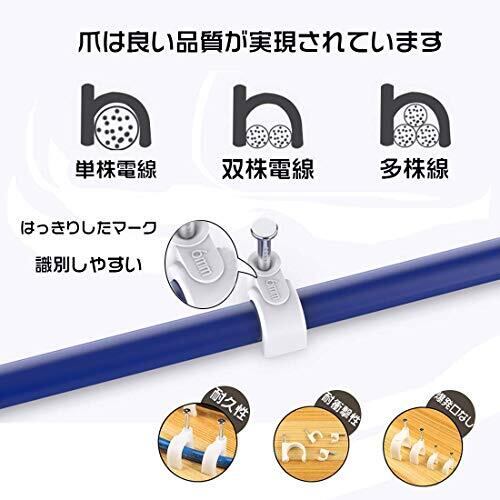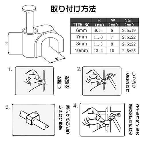 半円形 ケーブルステップル 釘止めタイプ 配線収納 固定爪 ワイヤ コードホルダー クランプ プラスチック ネイル付き ファスナー製 90個セット 4サイズ 6 mm 7 mm 8 mm 10 mm プラスチック製の収納ボックスが含まれています (ホワイト)