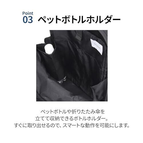 【マッキントッシュ フィロソフィー/ミア】:シンプルなデザインと、デジタルツールの持ち歩きにも対応したスマートな機能性が特徴のレディースバッグ。 【サイズ】:H37×W28×D12cm 【収納サイズ】:A4/13.3インチPC 機能一覧 【ペットボトルホルダ搭載】:メインスペースにペットボトルや折りたたみ傘等が収納可能なボトルホルダーつき。 【セットアップ機能】:スーツケースなどのプルドライブハンドルに固定し、走行時にバッグのふらつきを防ぐセットアップ機能を搭載