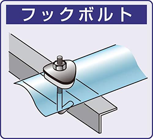 波板とアングルや母屋材の接合に! フックボルト・ナット・亀座・白パッキンセット。 100本入。下穴参考径:5.0~5.5mm。 本体材質:SUS304。スポンジ材質:パッキンガム。 波板の山の部分に穴をあけ、フックボルトの引っかけ部分をアングルに引っかける。その後、ナットを締め付けて施工完了。 注意:波板施工は、必ず波板メーカーの波板施工要領に従って下さい。施工要領に従わず施工された場合、雨漏りや破損の原因となります。