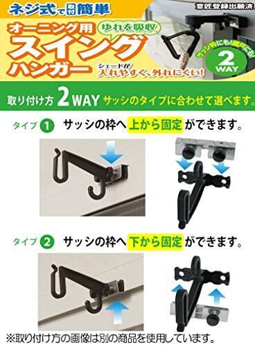 日本製 材質:本体/6ナイロン樹脂、取付金具/ステンレス サッシにねじ式で取付簡単、オーニング用スイングハンガー フックがタテヨコに動いて揺れを吸収します。 耐荷重:3kg/組 マグネットと滑り止めシートで強力に取付できます。