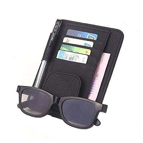 HerMia 車用 サンバイザーケース 高級本革 カード ディスク収納 収納ホルダー PUレザー収納ボックス 駐車券 小銭 領収証 ペン カード メガネ収納 小物入れ (ブラック)