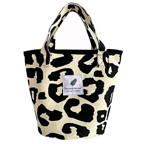 【ヒョウ柄】アニマルヒョウ柄、クリアな質感、ベージュベースのワイルドなヒョウ柄を選び、派手すぎず、目を引くワイルドなオーラになります。 素敵なバケットバッグタイプ、活発でかわいい、ファッショナブルな、いつものコロケーションに非常に適している、汎用性が高い。 【小さなボディに大きな容量】バケットバッグには、携帯電話やティッシュ、パウダー、口紅など、日常的に必要な小物を簡単に収納することができます。そのため、小物の整理整頓がしやすく、すぐに取り出せるのが特徴です。 【高品質な素材】上質なキャンバス生地を使用したバケットバッグは、丈夫で毛玉になりにくく、厚みのある生地は重量も軽いので、一般的なキャンバスバッグよりも耐久性に優れています。 キャリーハンドルも快適で、サイズもちょうどいいので、毎日の移動にぴったりです。 【マルチシーンで使える】キャリングハンドル付きで、持ち運びや吊り下げが簡単です。仕事、ビーチ、パーティーなどにも使えます。メイクアップバッグ、トイレタリーバッグ、収納バッグ、ジュエリーバッグなどとして使用できます。好きなように使う、持ち物を収納する、小型でコンパクト、持ち運びが簡単です。 【洗濯可能】私たちのキャンバストートバッグは洗濯機と手洗いが可能です。このトートバッグは、洗濯、ハングドライ、アイロンが可能ですが、室温の水を使用してきれいにしてください、日光にさらさないことを忘れないでください。私たちの布のトートバッグは、何度も使用することができ、環境に優しい旅行、グリーンライフ。