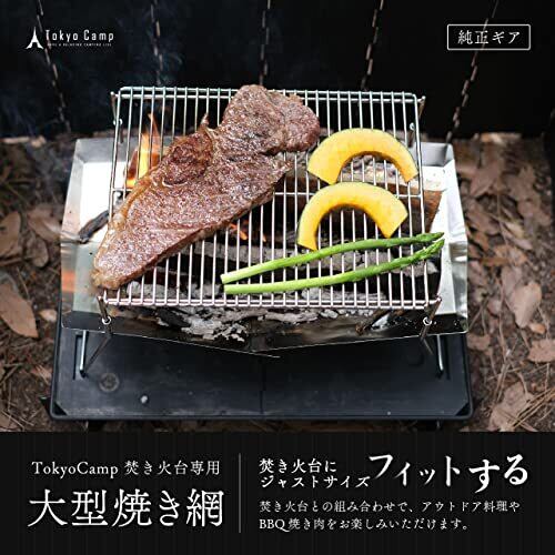 【ついに登場】ユーザー様より多くお声をいただいておりました Tokyocamp 焚き火台 専用の大型 焼き網 がついに登場いたしました。 【 TokyoCamp 焚き火台 専用 大型 焼き網 】 TokyoCamp 焚き火台 の上部にセットするだけで、広い 調理 スペースを確保できる専用の大型 焼き網 です。 ソロキャンプ でも充実した 料理 体験を提供します。 【 調理 スペースの拡大】 TokyoCamp 焚き火台 専用大型 焼き網 は、広い 調理 スペースを確保できる設計です。一度に多くの 食材 を 調理 できるため、グループや家族での キャンプ で効率的に 料理 ができます。 料理 のバリエーションを広げ、 アウトドア での 食事 体験をより楽しめます。 【高品質な素材】 焼き網 には 耐火性 に優れた ステンレス スチール( SUS304 )を採用しています。この素材は 耐火性 があり、長期間の使用に対応します。また、上部なつくりの為、何度でも繰り返してご愛用いただけます。 【取り外し可能】 焼き網 は取り外し可能なので、お手入れや収納時に便利です。キャンパー の皆様のニーズや状況に合わせて調整できるため、柔軟な使用が可能です。 焚き火台 との組み合わせを簡単に変更できるため、 料理 のスタイルやメニューに合わせた使い方ができます。