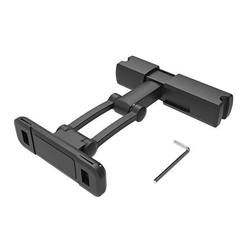 ヘッドレストシャフト取付け専用のタブレットホルダーです。 小さなお子様から大人までそれぞれの見やすい高さ・角度にスイングして簡単に調節できます。 上下・前後に可動するスイングアームを搭載し、付属の六角レンチでヒンジのトルクを調整できます。 4.7~12インチまでのスマートフォンやタブレットに対応します。 ホルダー部は格納式で使わない時はコンパクトに折りたためます。 不意に接触してもシャフトから外れないために【安全ロック機構】を取付け部に搭載しています。 ヘッドレストのシャフト間隔(内側寸法)が120㎜~140㎜までの車に取付可能です。