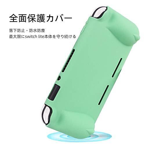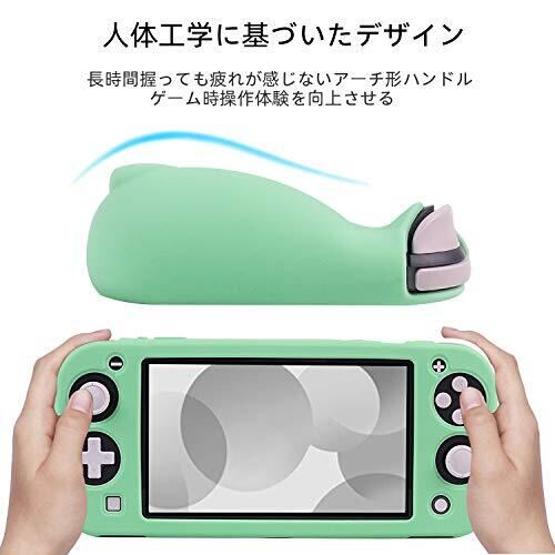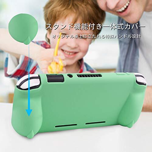 switch liteカバー スイッチライト ケース シリコン素材 ソフトカバー 柔らかい 一体式 全面保護 耐衝撃 特殊ハンドル 薄型軽量 快適な手触り 着脱簡単 防水防塵 スタンド機能 スティックカバー4つ 液晶保護フィルム1枚付き(薄緑)