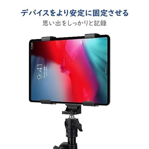 タブレット ホルダー ATiC クリップ タブレットスタンド 固定ホルダー ABS製 耐久性 安定 三脚取付用 iPad 第11/10世代/iPad Air11/Air5/Air4/ipad 10.2 2021/2020/2019/iPad mini 6/5/4/iPad Pro 10.5 & 9.7/iPad Pro/HD 10 7~11インチタブレットに適用 Black