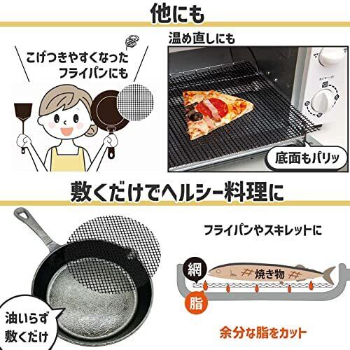 グリルにこびりつかずにお手入れ簡単! 敷くだけで使用でき、大きさも自由にカットOK! 水洗い可能で、繰り返し使える! 食材がグリルの網に触れず、おもちもキレイに焼ける! 【仕様:※直火には使用しないでください。※食器洗い乾燥機には使用しないでください。】 サイズ:約25cm×1m