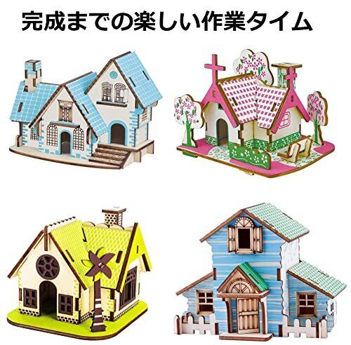 【立体パズル】環境に優しい木製の立体パズルです。森の中のおうち4種類をセットにしました。 【楽しい作業タイム】完成予想図を想像して、ワクワクしながら楽しく組み立てられます。作っている間は没頭できて時間を忘れてしまいます。 【親子でおうちタイム】外出できないときも親子で力を合わせながら、楽しく過ごせる知育おもちゃです。 【インテリアとしても】完成した模型は、インテリアとしても重宝します。また、お人形さんと一緒に遊んでも楽しめます。 【セット内容】メルヘンハウス・森の教会・風車小屋・森のコテージ