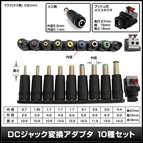 Kaito Denshi(海渡電子) ACアダプター【PSE適合品】変換10種セット 5V 1.5A 7.5W センタープラス スイッチング 5.5mm 2.1 mm DCプラグ RoHS