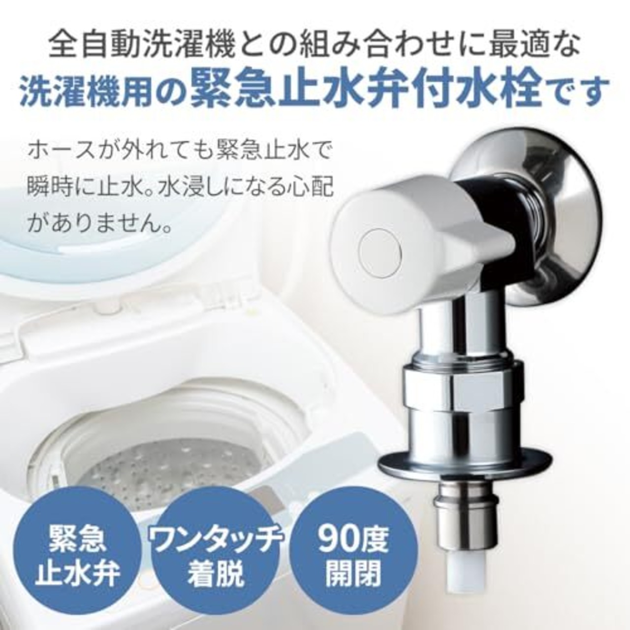 緊急止水弁洗濯機用水栓「ピタットくん」 スパウトを取り外しできない水栓には… 洗濯機用ホースワンタッチ着脱 寒冷地用