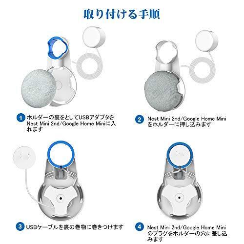 【対応機種&互換性】Google Nest Mini (2nd gen)/ Home Mini に対応する専用壁掛けホルダーです。Google Nest Mini (2nd gen)/ Google Home Mini との互換性があります。注意:スピーカー本体は含まれません。 【簡単な操作】装着・脱着は極めて簡単な操作となっています。壁に取付具を打ち込む必要がありません。数秒で取り付けが完了します。 【空間を節約】Google Home Mini/Nest Mini (2nd gen)の配線をしっかりマウントに巻きつけてください。寝室、キッチン、リビングなどのコンセプトでも使用可能です。 【実用的な性能】特別に製作された青色のゴム部品には滑り止めの効果があります。放熱対策がされていますので、充電しながら使用できます。壁のコンセントにかけても、音声を遮られにくくなるようにしてあり、集音性能を高めています。 【保証期間】この商品は、ご購入日より2年間の保証を提供いたします。もし初期不良或いは使用中なにか問題がありましたら、お気楽に弊店のカスタマーサービスにご連絡ください。