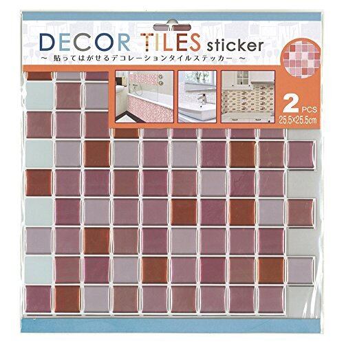 モザイクタイルシール25.5×25.5cm2枚セットスクエア/ピンクITLA006