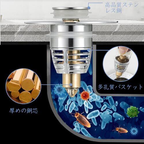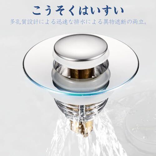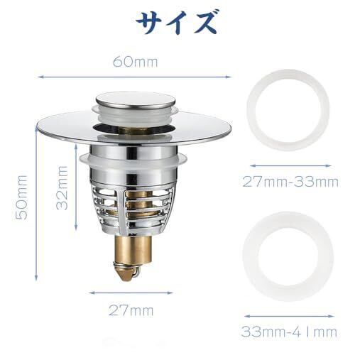 【耐久性】高品質の素材で作られており、抗酸化性、耐腐食性、防錆性能に優れ、高品質スプリングを内蔵し、長持ちします。 【オーバーフロー防止】大きなゴムパッドがついており、ゴムと金属の表面が密着しているので、水漏れを防ぎます。異なるサイズのゴムリングが2つついており、安定性を高め、水漏れを防ぎます。 【目詰まり防止】詰まり防止用のストレーナーが付いており、髪の毛やジュエリー、指輪などの小物が排水管に詰まるのを防ぎます。 【取り付け簡単】取り付けが簡単で、道具を使わず古い排水栓を取り出して、新しいポップアップ排水栓を排水口に設置するだけです。 【幅広い適用範囲】34mm-40mmの幅の排水口に適用でき、洗面器、浴室のシンク、浴槽、バスタブ、台所などほとんどの洗い場に対応します。