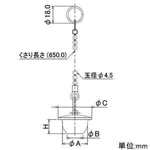 カクダイ バス用ゴム栓くさりつき TOTO(THY429)補修用 くさり650mm付き 上辺55mm 下辺44mm 491-173