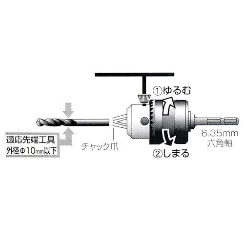 軸径(mm):6.35六角軸 先端工具のつかみ範囲(mm):口径1.5~10 タイプ:チャックハンドル 適応工具:インパクトドライバー 付属品:チャックハンドル