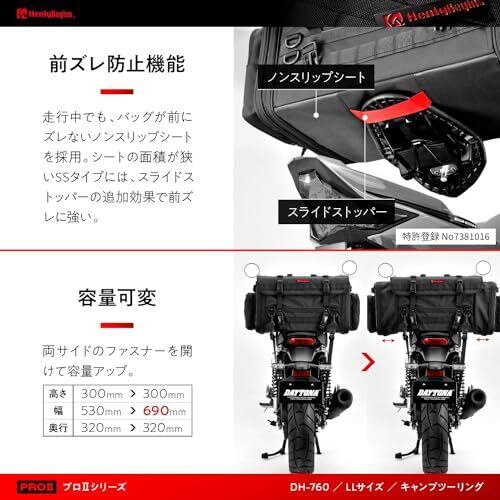 ヘンリービギンズ(Henly Begins) デイトナ バイク シートバッグ PRO2 LLサイズ(55-70L) 大容量 キャンプツーリング DH-760 26214