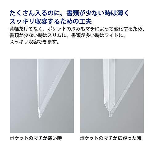 書類の量に応じて背幅が変わるから、かさばらずに収容できる領収書&明細ファイル 【サイズ】 A4-S 【外寸法(高さ・幅・背幅)】 311×267×20~40mm 【ポケット数】 48 【ポケット内寸法】 タテ150×ヨコ240mm 【1ポケット収容枚数】 10枚 【材質】 表紙:R-PP、ポケット:PP、背ポケット:PP