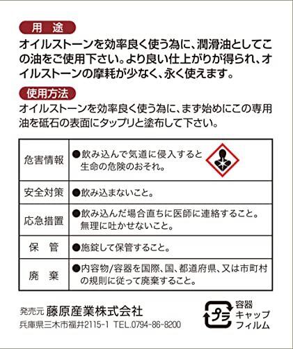 用途:オイルストーン(油砥石)を効率良く使う為の潤滑油 特徴:より良い仕上がりで、油砥石が永く使える 容量:100ml 材質:鉱物油100% 入数:1本