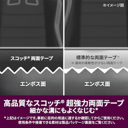 【製品情報】使用温度範囲:-20~90℃ / サイズ(厚みx幅x長さ): 1mm x 15mm x 3m / 基材:高密度ポリエチレンフォーム / 粘着剤:アクリル系 / 仕様: 車内 【さまざまなダッシュボードにしっかり接着する、超強力両面テープ! 】 ダッシュボードに小物やアクセサリーの固定に便利なダッシュボード用両面テープ。ポリエチレン・ポリプロピレン・軟質塩化ビニール・ポリカーボネート・ABS・硬質塩化ビニール・金属(鉄・アルミ・ステンレスなど)に接着できます。 【車内の小物をしっかり固定、振動に強い超強力両面テープ! 】高品質な両面テープで、凸凹面やエンボス面があるダッシュボードにしっかり密着します。振動にも強く、固定した小物やアクセサリーが外れる心配がありません! 【夏場の車内にも耐えらる優れた耐熱性! 】-20℃から90℃までの厳しい温度環境でもしっかり耐える高い耐久性のある超強力両面テープ。安心してお使いいただけます。 【超強力なのにあとからはがせる両面テープ! 】しっかり固定できて、キズつけずにあとからキレイにはがせる超強力両面テープ。付属のはがしツールでテープを分断することで、貼ったものを取り外すことができます。 【工具いらずで、パパッと取り付けられる! 】工具を使わずに手軽に取り付けられます。 【貼り付け時の温度】10℃以上 ※製品裏面の説明書き、使用・安全上の注意をよく読んでご使用ください。※本製品は使用方法・使用条件により思わぬ損害を生じることがありますので、事前に目的の用途に適するかどうかをご確認ください。 【接着できない素材と場所】シリコーンやフッ素樹脂加工面 / 表面や塗装がはがれやすい面 / 凹凸の激しい面 / 特殊加工したダッシュボード面 / 段差がある場所 / 曲面がきつい場所 / 常に高温になる場所 / 湿気の多い場所
