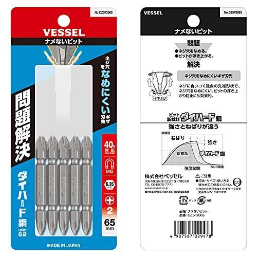 ベッセル(VESSEL) 40V対応 問題解決ビット ナメない両頭ビット +2×65 5本組 DZ5P2065