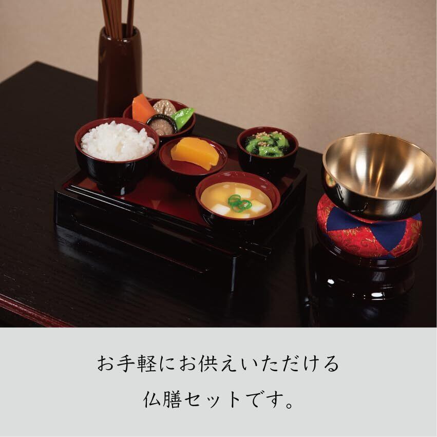 サンメニー 本格 仏膳 5.5寸 仏壇用 山中漆器 日本製 お霊供膳 お供え膳 セット 仏具 仏膳セット 仏膳器 仏膳台 現代 仏壇 仏具小物 タメ 毎日のお供え お参りに 手元供養 ペット 供養 小さな スペース にも 飯碗 汁椀 平椀 壺椀 高月 幅18.0×長さ15.0×高さ11.0cm [Sunmany]