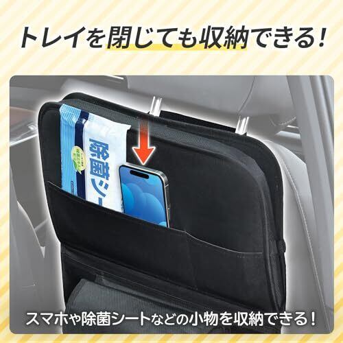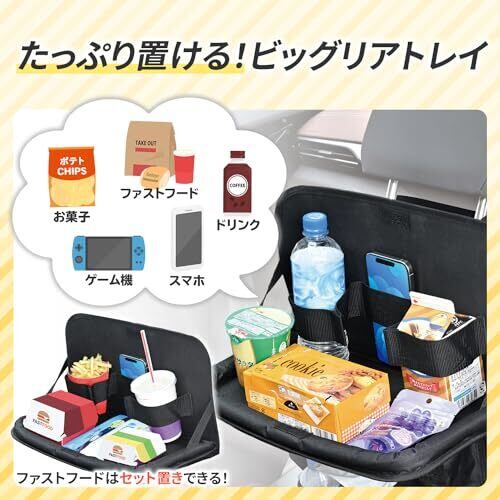 セイワ(SEIWA) 車内用品 後部座席用テーブル ソフトシートバックトレイWA143 リアトレイ 大型 ワイドサイズ 布生地製 多機能 収納ポケット ティッシュカバー ドリンクホルダー フック マチ付き 閉じてもシートバックポケットとして使える