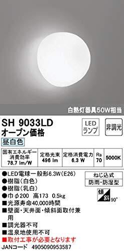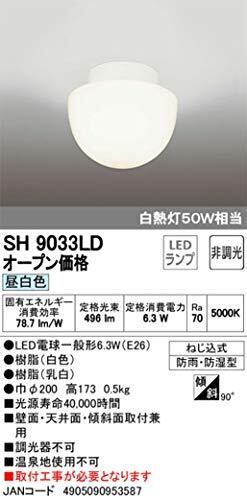 オーデリック LEDバスルームライト 【白熱灯50W相当】 昼光色 (取付工事必要) SH9033LD