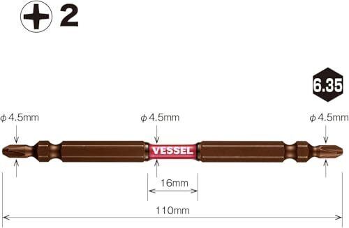 ベッセル(VESSEL) サキスボ スリム トーションビット 両頭 +2×φ4.5×110mm 10本組 SDT10P2110F