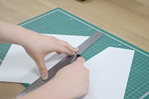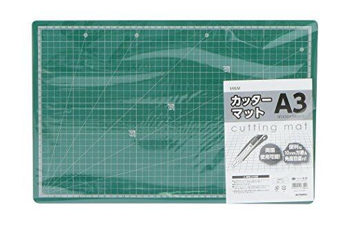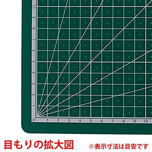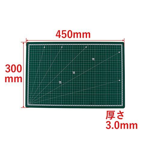カッティング作業時に 両面使用可能・便利な10mm方眼&角度目盛付(0~90度・15度刻み) 色:グリーン サイズ:A3(約450×300mm) 材質:PVC