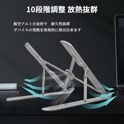 Kingtech ノートpc スタンド ラップトップスタンド PC/MacBook対応 7段階高さ調節 強固 折りたたみ式 アルミ合金航空用 引き出し付き 40KG荷重 kalt/putrak/.extendtab ために?