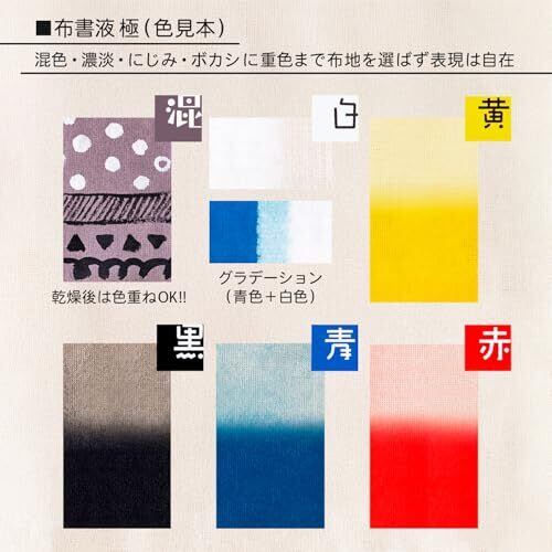 【布書液「極」】ぼかしに滲み、重色まで表現でき、自然乾燥で布に定着する布書液 【特徴】収納時もコンパクトに収まる 【使い方】原液を希釈して布に描く。アイロンがけ不要。 【内容量】70ml 【商品サイズ】47×61×63mm