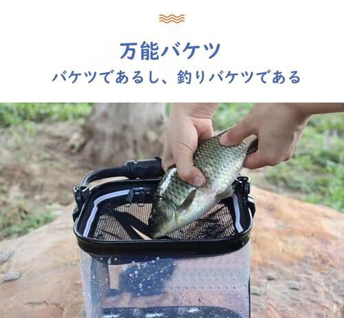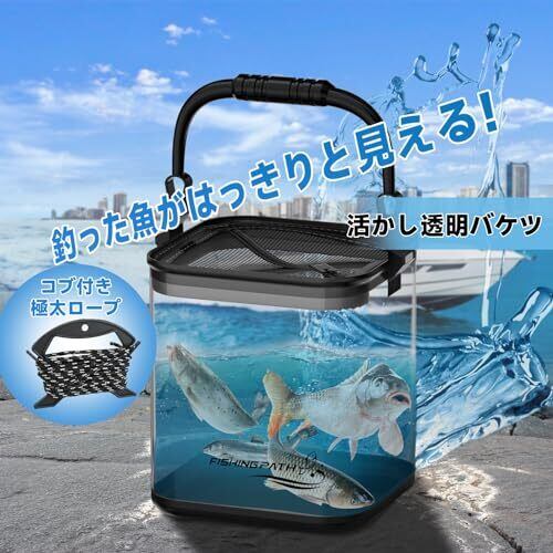 釣り バケツ 透明 改良型 滑り止めロープ付き 釣り バッカン 釣り道具 【魚が一目瞭然】水汲み 折りたたみ バケツ