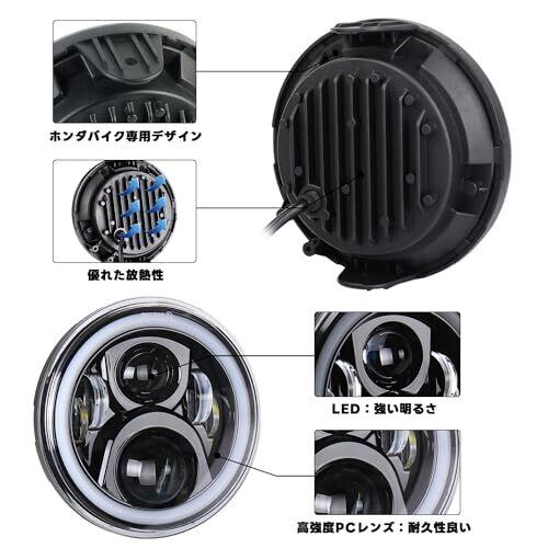 MOVOTOR ホンダバイクCB13007インチLEDヘッドライト ホーネット250対応 DRL機能 イカリング付き Hi/Loビーム ブラック 1個