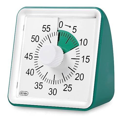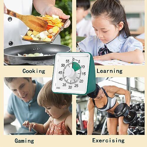 LivingHall キッチン タイマー 60分 視覚タイマー 教室のカウントダウンクロック 子供と大人のためのサイレントタイマー 授業時間管理ツール (グリーン, 8cmX8cmX4cm)