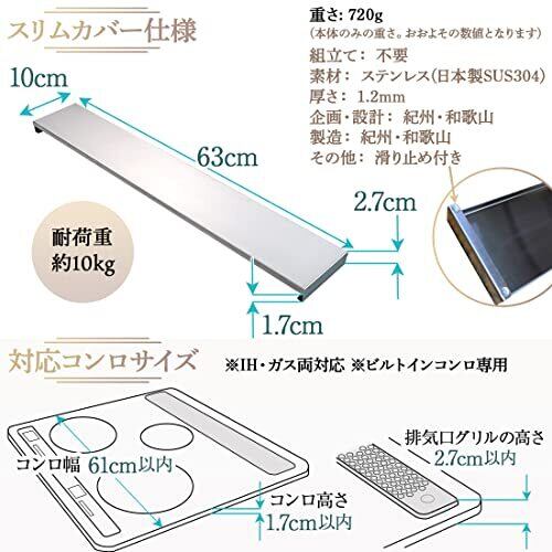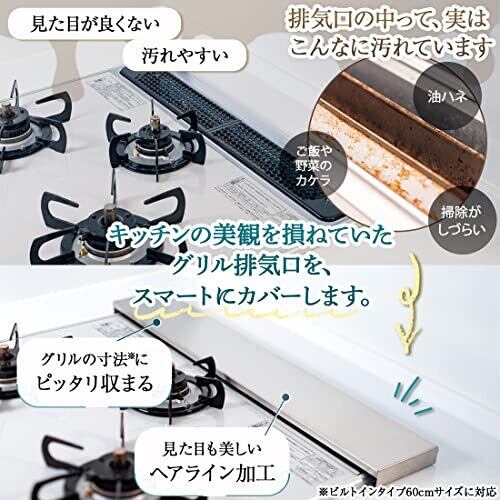 排気口カバー スリム タイプ 【安心の日本製 厚さ1.2mm 高級 ヘアライン ステンレス 使用】 IH ガス 両用 コンロカバー コンロ 排気口カバー イキテクス (60cm)