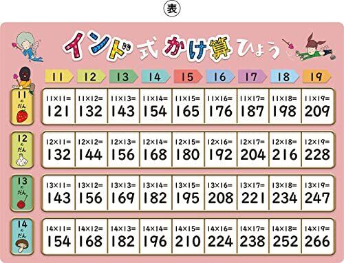 【九九から19×19までを完全制覇】基本の九九と、暗算力が飛躍的に高まるインド式かけ算がセットになりました。基礎から発展的な2桁のかけ算まで一気にカバーできるため、学年に合わせたステップアップ学習に最適です。 【暗記を助ける読みがなと色分け】全ての式に唱え方のふりがなを付け、段ごとに色分けした見やすいレイアウトを採用。正しい読み方で反復練習ができるため、暗記のスピードと正確性が格段にアップします。 【数量感覚を育むイラストと遊び心】数に応じたイラストやゆかいなキャラクターが学習のアクセントになります。視覚的なヒントがあることで、かけ算の仕組みを直感的に理解でき、算数への苦手意識を軽減します。 【整理しやすい便利なA4サイズ】教科書やノートにぴったりのA4サイズで、ランドセルに2枚重ねて入れてもスッキリ収まります。耐久性に優れた素材を使用しており、学校や自宅で毎日ガシガシ使っていただけます。 【進級のギフト・プレゼントにお得なセット】算数の壁を乗り越える応援アイテムとして、単品より50円お得なセットは贈り物に最適。実用的で長く使えるため、お子様やお孫様へのギフト・プレゼントに大変喜ばれます。
