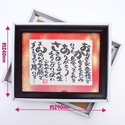 ユニークで暖かい想いがこもったメッセージを額に入れプレゼント!大切なおばあちゃんへ思いが伝わる様に、真心込めてお作りしております! 感動の贈り物「まごころ額」で感謝の気持ちを伝えてみませんか?敬老の日のプレゼントにおすすめ! 背景の台紙には、赤金色の高級和紙を使用しております。 プレゼント用に包装した状態でお届け!ラッピング済みの状態でお届け致します。 額の大きさ 約29cm(ヨコ)×約24cm(タテ)